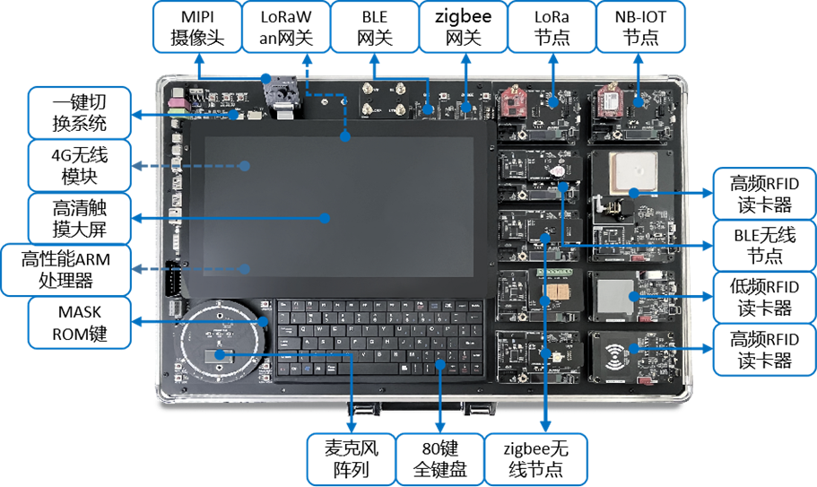 嵌入式邊緣物聯(lián)網(wǎng)實(shí)驗(yàn)平臺(tái)是一款集成物聯(lián)網(wǎng)、人工智能、嵌入式、移動(dòng)互聯(lián)技術(shù)于一體的高端教學(xué)科研實(shí)驗(yàn)平臺(tái)。整個(gè)教學(xué)平臺(tái)包括物聯(lián)網(wǎng)、嵌入式Linux和人工智能(AI),三個(gè)部分互相支撐、互為補(bǔ)充。人工智能部分的硬件基于嵌入式ARM控制器、高清相機(jī)模塊、7麥麥克風(fēng)陣列,具備語(yǔ)音、圖像數(shù)據(jù)的采集和處理能力及適用于多種場(chǎng)景的控制接口;嵌入式Linux部分的硬件采用CPU+GPU雙處理器架構(gòu),配備高清大屏以及豐富的外設(shè)接口;物聯(lián)網(wǎng)部分的硬件支持RFID、Zigbee、Ble、Lora、NBIoT等無(wú)線傳輸技術(shù)以及20余種傳感器模塊。
