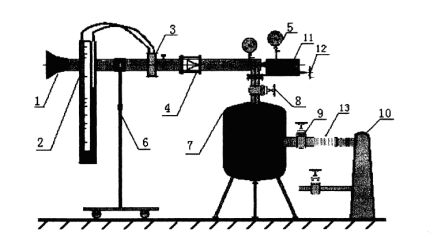 真空泵運轉時,空氣自實驗本體的吸氣口進入,一次通過進氣管段、孔板流量計、噴管,最后排至室外。