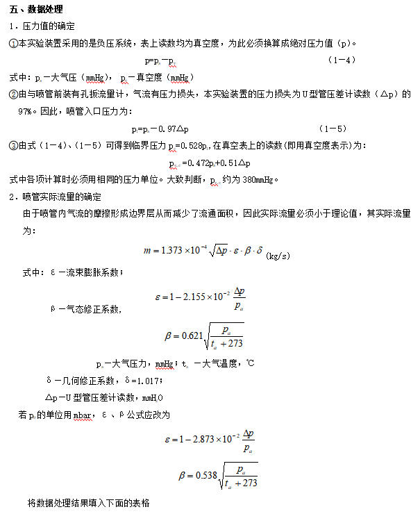 為縱坐標,繪制流量曲線。3.根據(jù)條件計算噴管最大流量的理論值,并與實驗值比較。