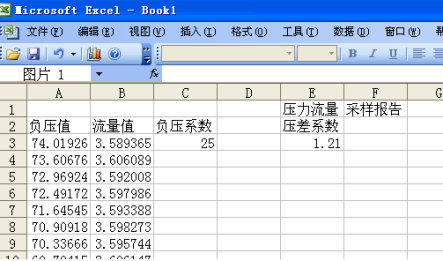 4.2.2 逐漸關閉罐后的壓力調節(jié)閥,按下數(shù)據(jù)采集開關,這時,壓力流量曲線會隨著壓力調節(jié)閥漸漸的關閉在計算機屏幕中顯示出來,同時,還會顯示當前的壓差值與流量值。