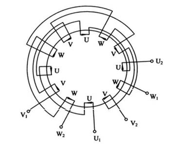 ② 用不同的顏色區(qū)分頭尾,且用 U1、V1、W1 標(biāo)明繞組的始端,U2、V2、W2 標(biāo)明繞組的末端。