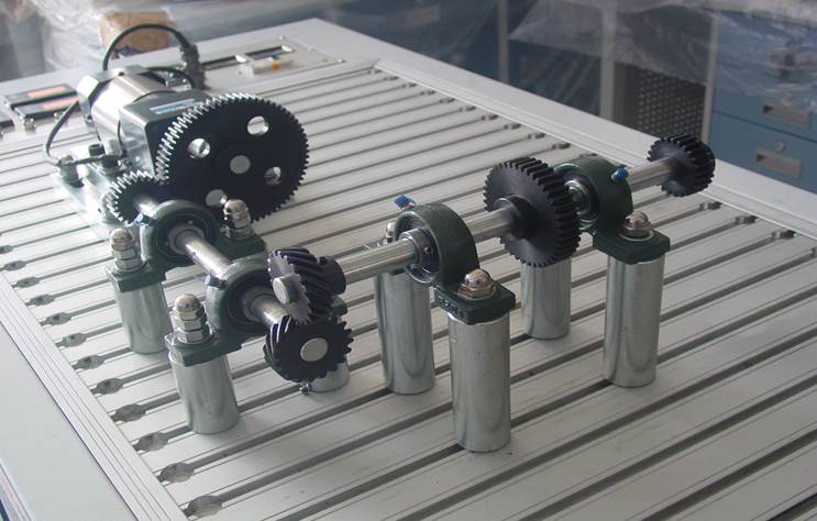 1、選折合適的位置安裝電動機,并把主動齒輪安裝在電機軸上。(安裝過程見直齒圓柱齒輪傳動實驗)。