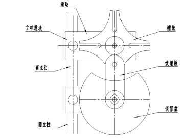 機構(gòu)說明:槽輪機構(gòu)動力性能較差,但若將一個導(dǎo)桿機構(gòu)串聯(lián)在槽輪的機構(gòu)之前,則可改善槽輪機構(gòu)的動力性能。圖1 槽輪機構(gòu)