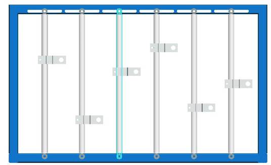 實(shí)驗(yàn)臺(tái)機(jī)架如圖2所示:機(jī)架中有5根鉛垂的活塞桿,它們可沿X軸左右移動(dòng),固定靠六角頭螺釘和蝶型螺母固定。需移動(dòng)時(shí)請(qǐng)先將蝶型螺母松開,雙手推動(dòng)活塞桿.并盡可能使它保持垂直狀態(tài);钊麠U上的滑塊可沿Z軸上下移動(dòng),用內(nèi)六角螺釘將滑塊緊定在活塞桿上。(注意:在移動(dòng)立柱或滑塊時(shí)需用直尺或卷尺量出它們的相對(duì)位置再把螺釘擰緊。)